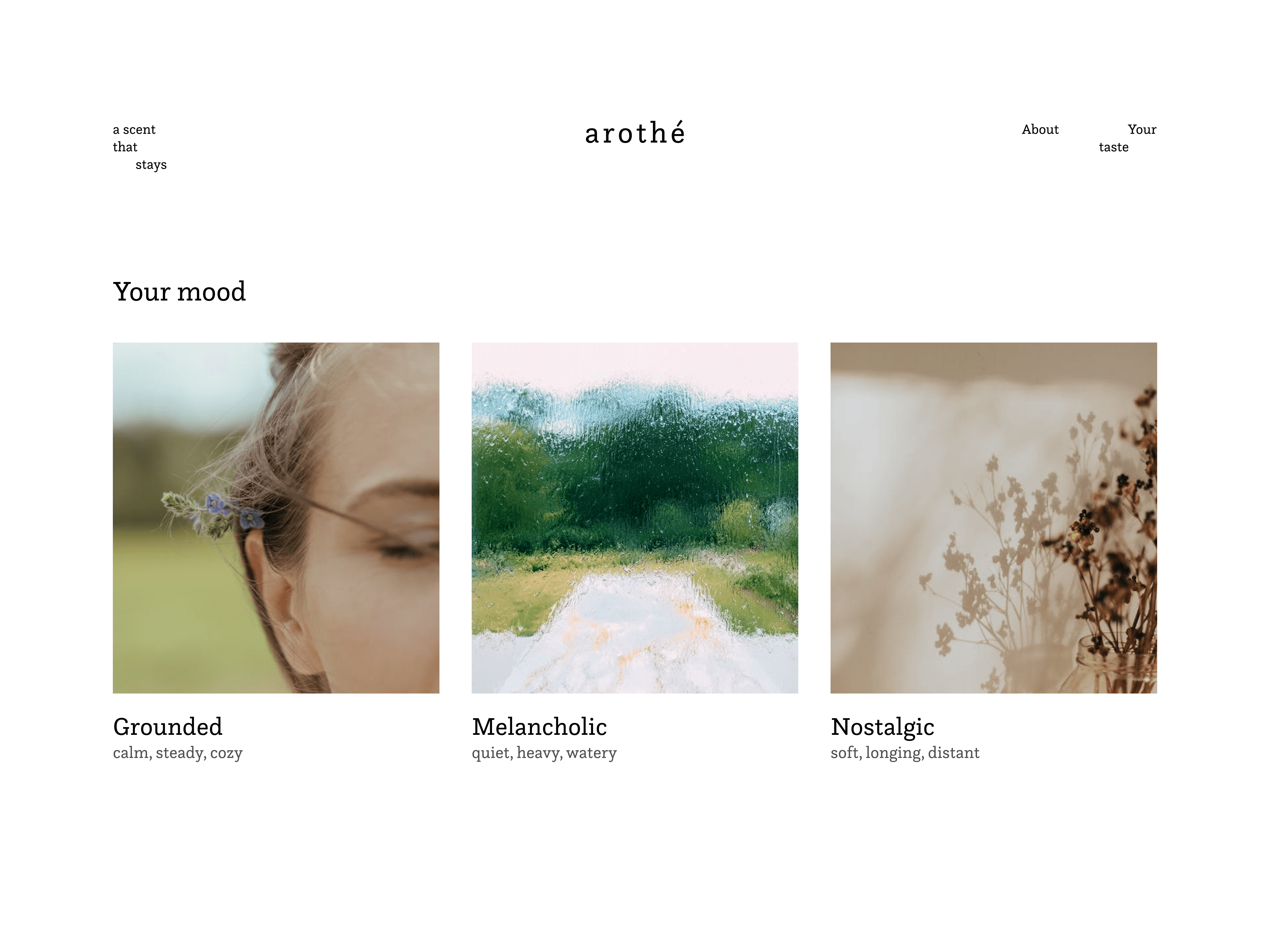 Branding for Arothé, a personalized perfume label rooted in the concept of aroma therapy. Designed to capture intimate moments through scent, the brand offers a sensory space for reflection and emotional healing.