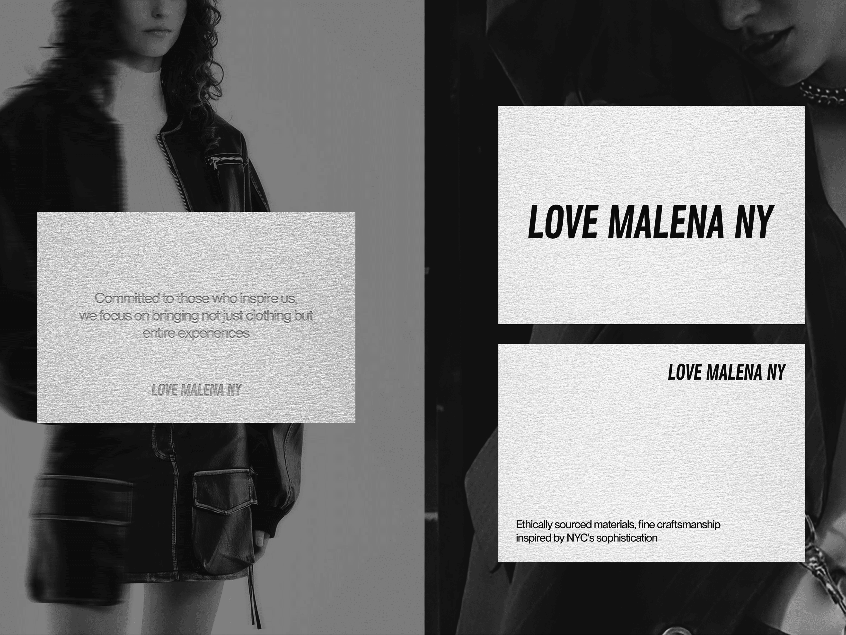 Brand identity design for fashion retailer Love Malena, blending New York urbanism with Italian craftsmanship. Focused on creating a sleek, minimal aesthetic that reflects the brand’s distinct multicultural sensibility.