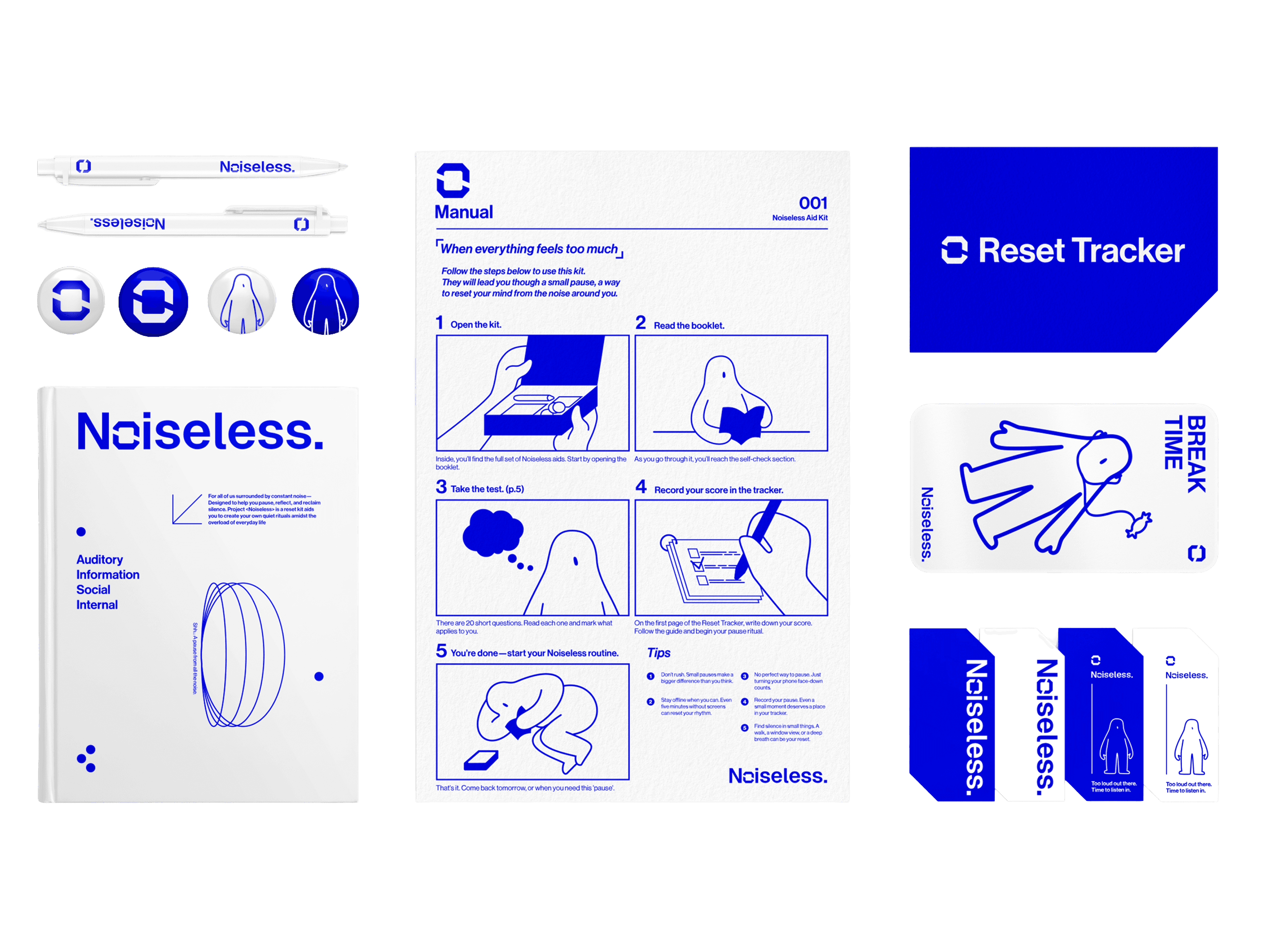 What if silence became a form of resistance? In a world flooded with endless noise, we rarely get a chance to truly pause and reset our minds. The post digital era—defined by constant connection—exposes us to a relentless stream of stimuli. ‘Noiseless’ is a design initiative that responds to this reality, guiding you to a space where you can rethink noise, pause with intention, and rediscover the quite power of being noiseless.