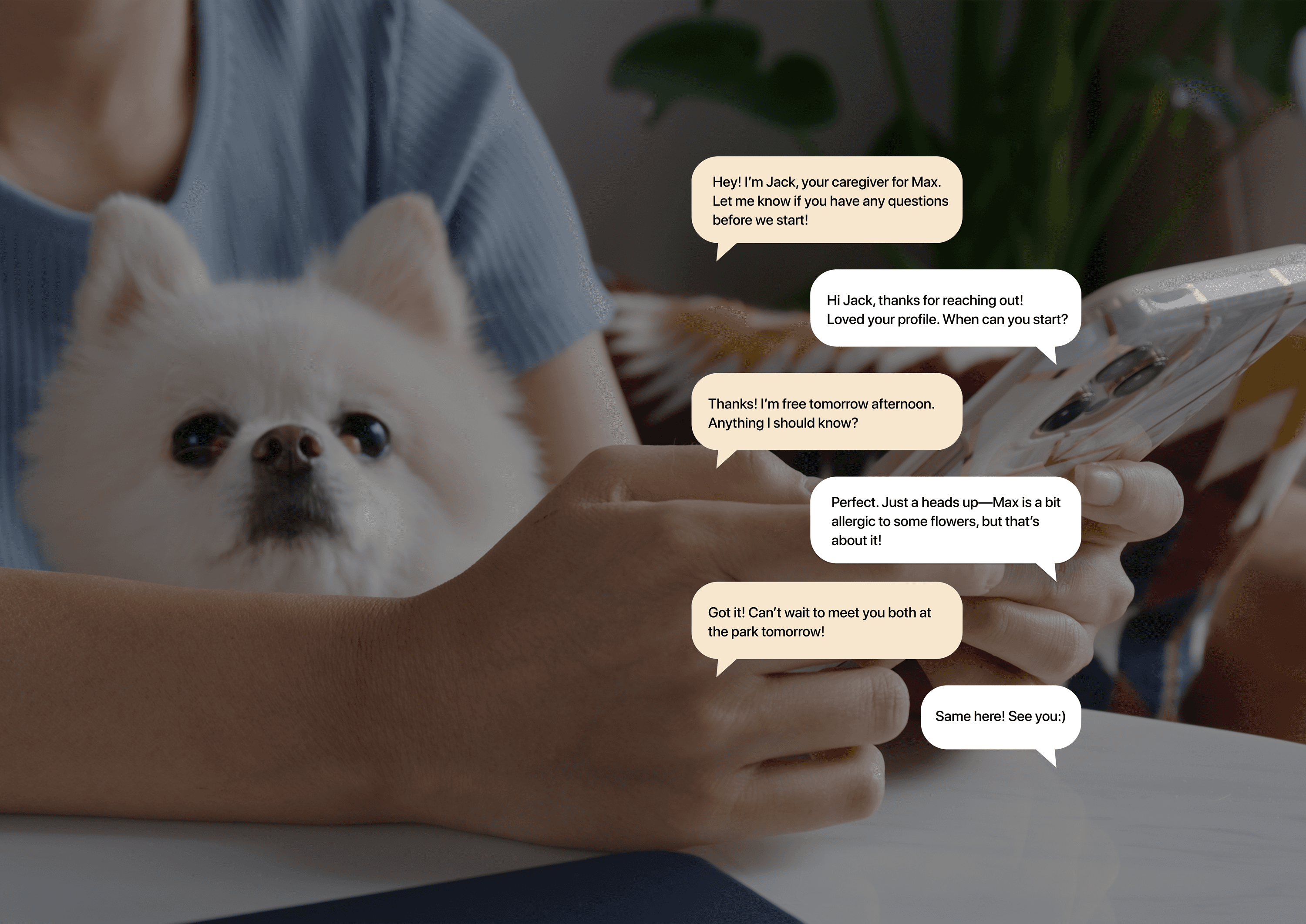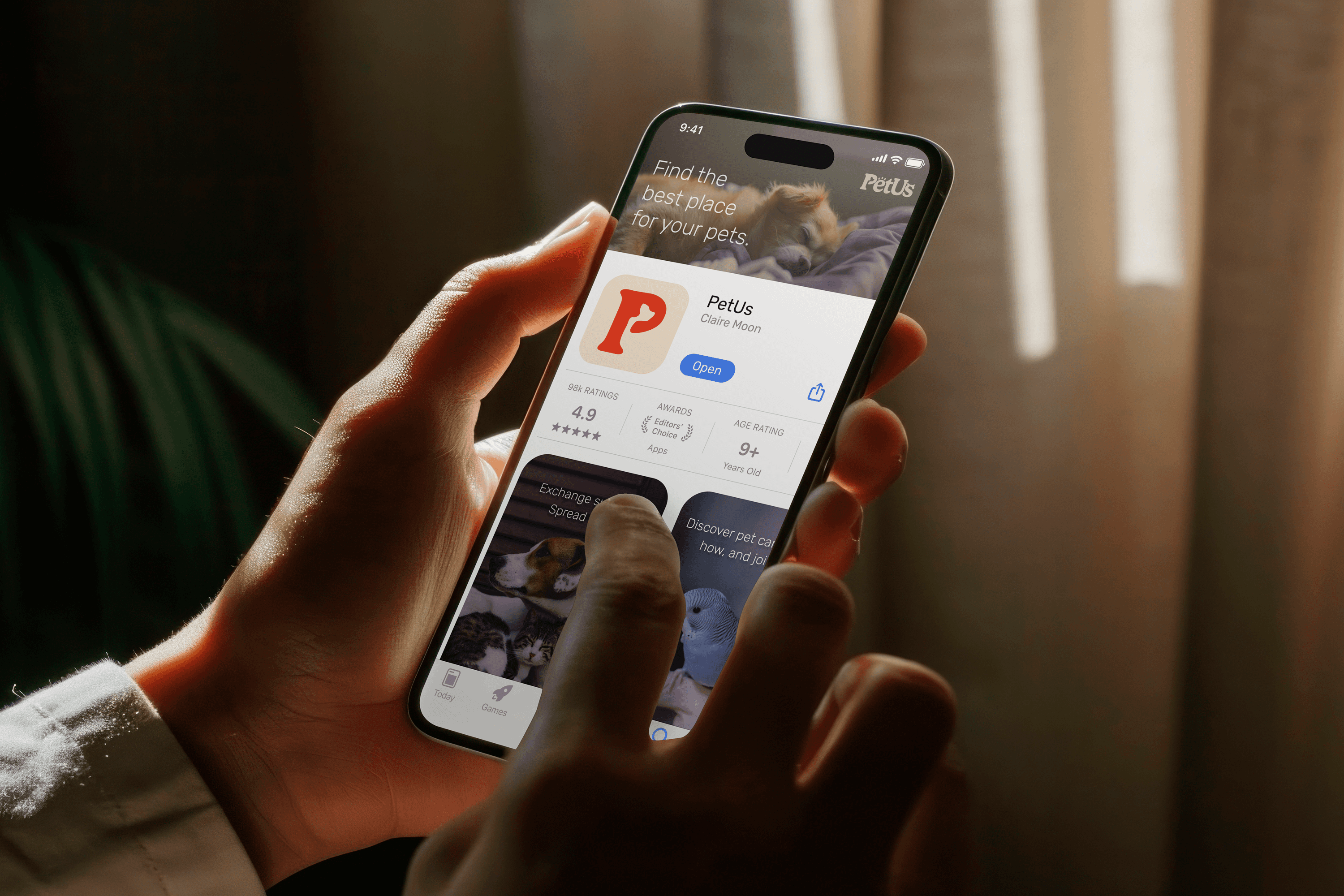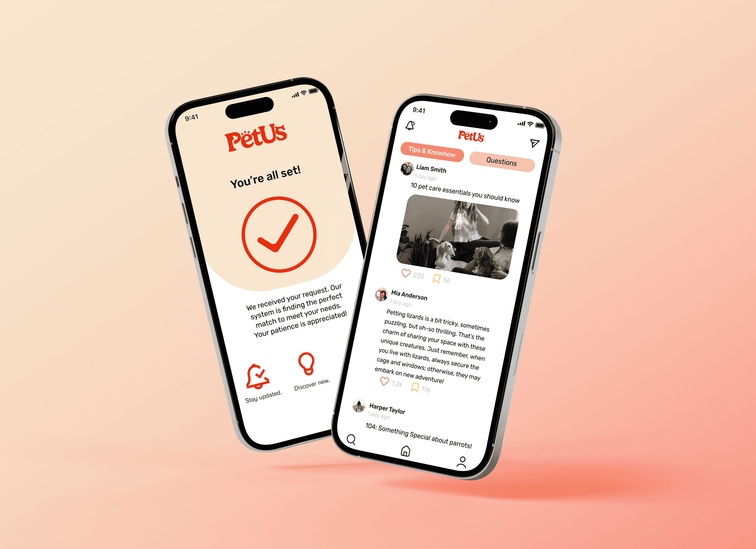Mobile app design for a community-based pet care platform. Featuring interchangeable user roles—pet owner and caregiver—to foster a more connected and supportive pet care culture in everyday life